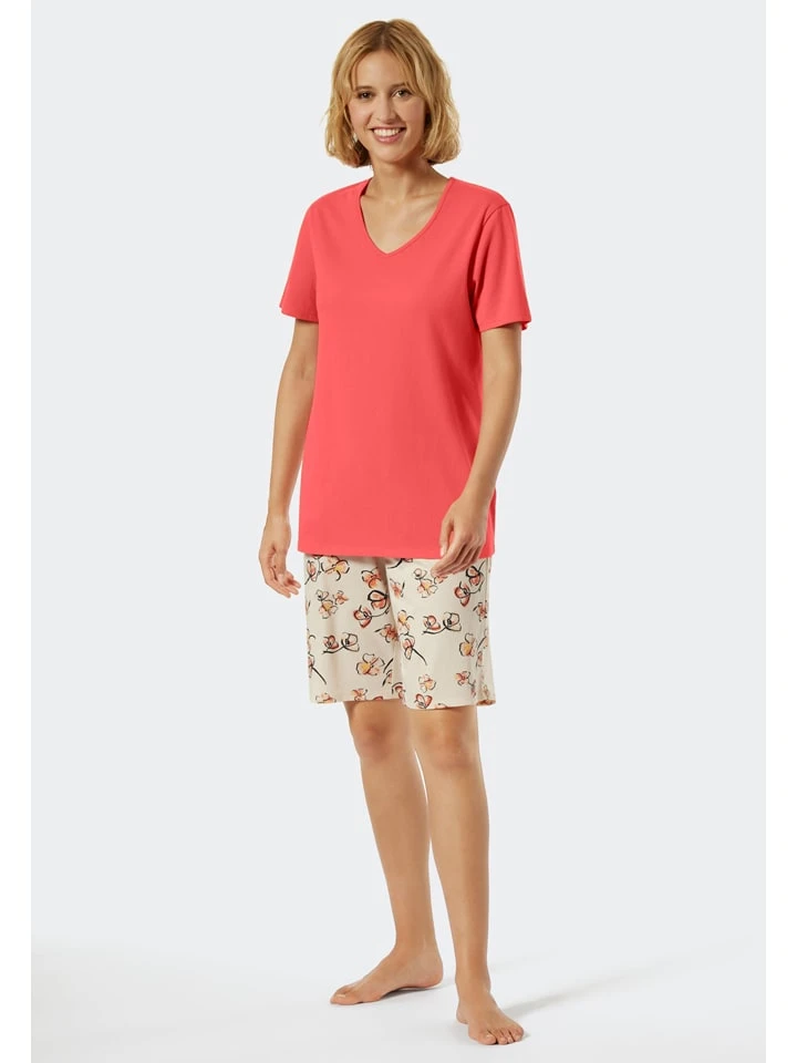 Schiesser Pyjama In Koralle/ Creme